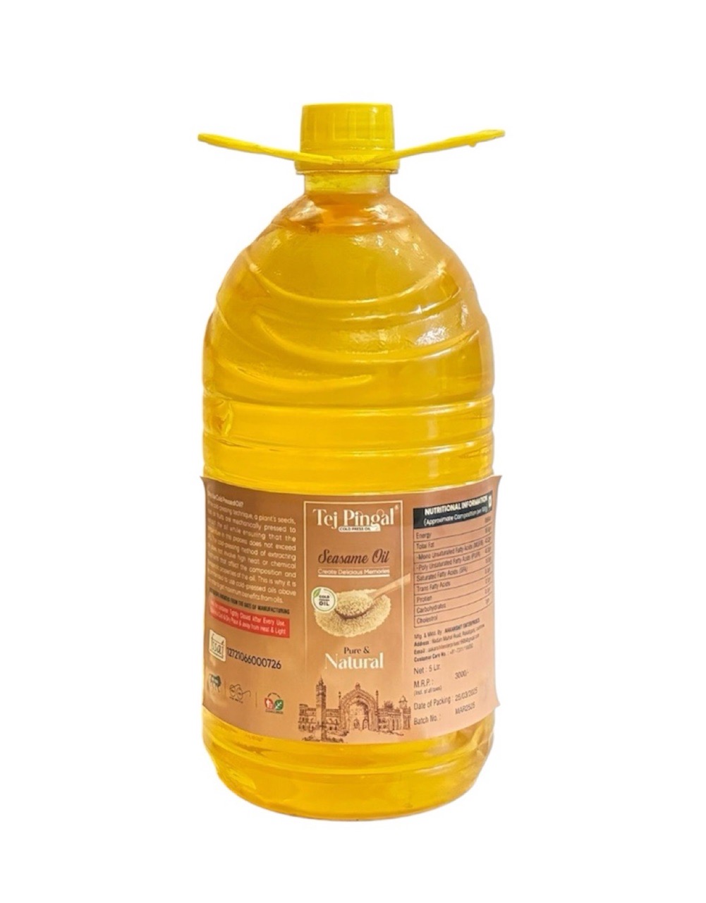 Tej Pingal Cold Press White Sesame Oil (5L Jar)