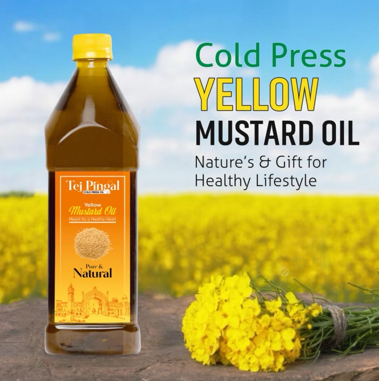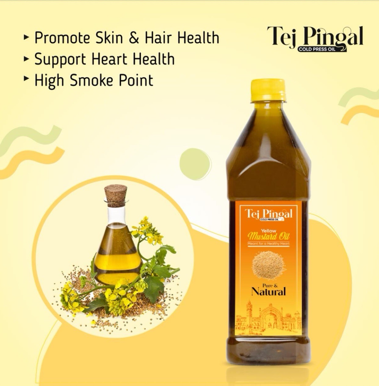 Tej Pingals Yellow Mustard Oil is a premium quality cold-pressed oil ideal for cooking and frying. Made purely from mustard seeds, it helps promote a healthy heart and enhances the flavor of your dishes.